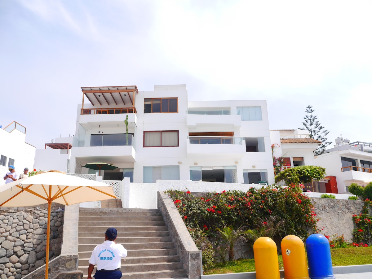 Ganas de pasar unos días tranquilos en familia con una linda vista al mar,este será tu sitio favorito. Cerca al todo ,a unos pasos de la bajada a la playa Norte. Y encima con Piscina propia . Muy cerca al mercado , panadería, farmacias,tiendas , restaurantes y cajeros automáticos.