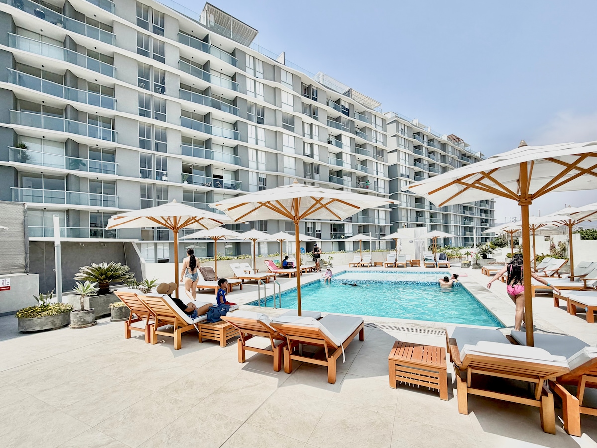 Departamento de nuevo con vista al mar, a 5 cuadras de la playa. Cuenta con 2 piscinas , área de parrillas , cancha de fútbol , básquet juegos para niños e ingresos para personas con discapacidad , si buscas celebrar tu cumpleaños , una escapada romántica, o estar con la familia este es tu lugar, disfruta del nuevo mall Punta Mar a solo 5 minutos y el centro comercial KM 40 con variedad de tiendas como Wong y el Gimnasio Smart Fit , además de variedad de discotecas.