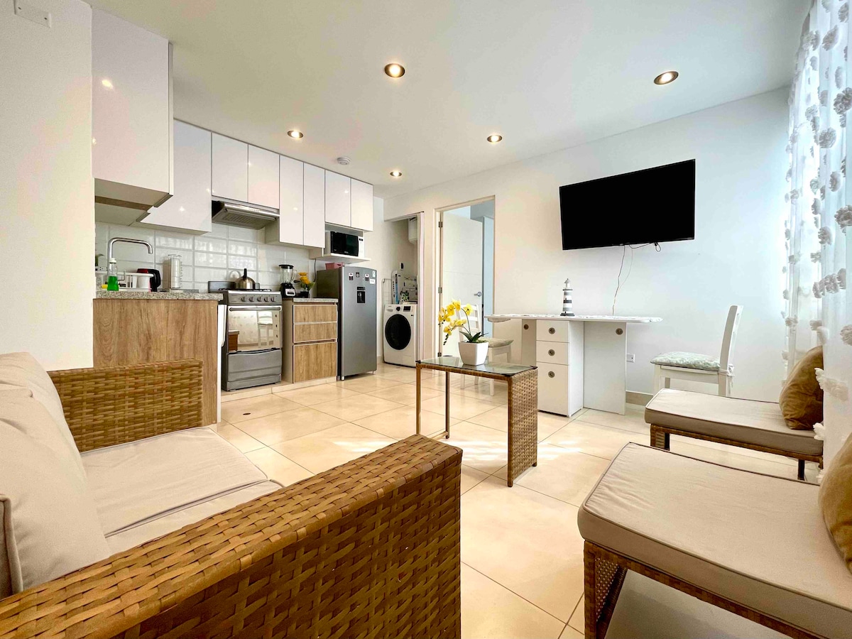 ¡Disfruta los mejores sunsets desde nuestro depa temático frente al mar! - Impresionante vista al mar desde el balcón y zona de parrilla. - Espacios amplios y luminosos. - Sala con sofá cama de 2 plazas. - Kitchenette equipado y comedor para 6. - Dormitorio #1 con cama queen, vista al mar, acceso al balcón y baño privado completo. - Dormitorio #2 con cama de dos plazas y armario. - Baño de visita completo con agua caliente. - TV con cable y WiFi . -1era lína, a 6 metros de distancia.