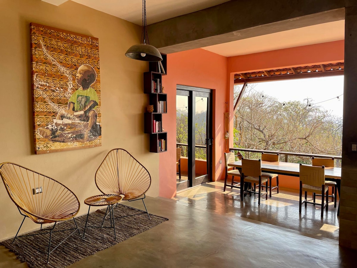 Popoyo Loft,海景和森林景观。Casa bosque