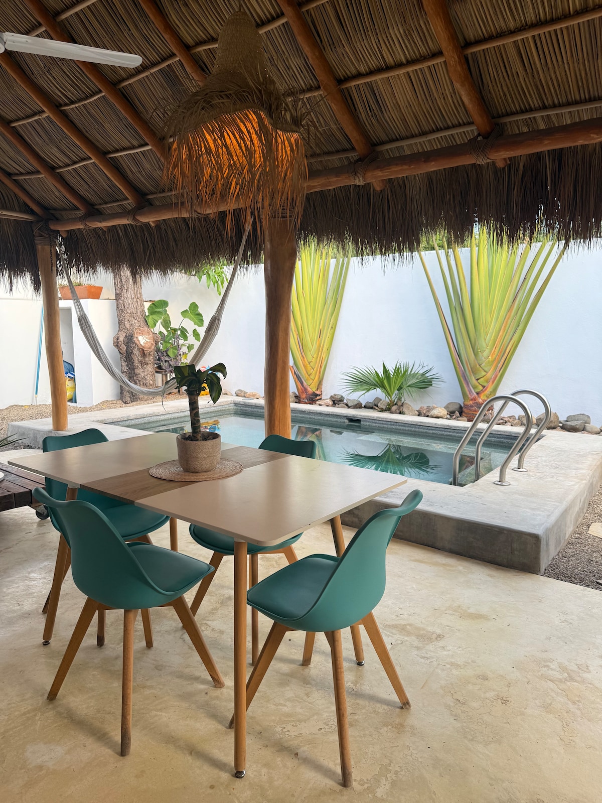 Casa Latino 4,带泳池和茅草屋顶。