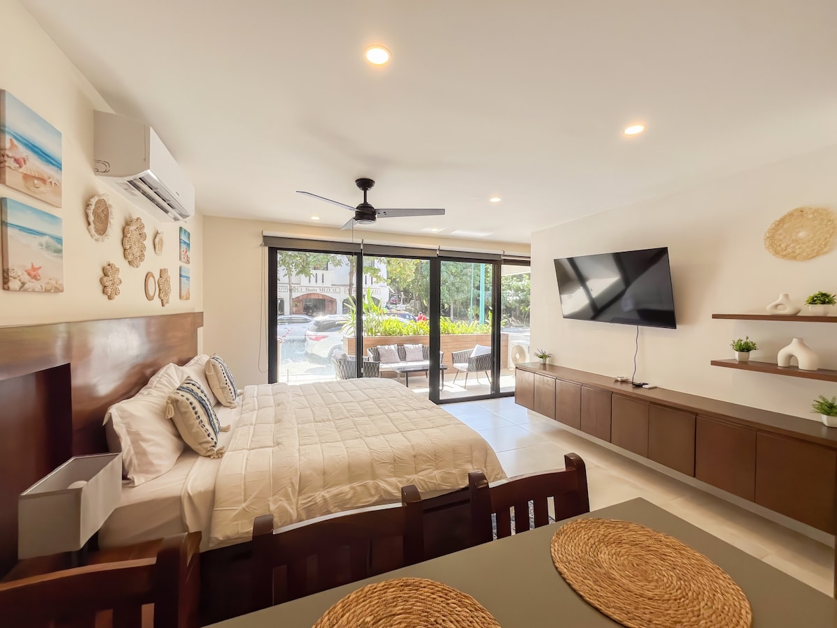 Un departamento fresco y moderno para unas vacaciones inolvidables con la familia o para trabajar en smart working. Decorado con detalles preciosos que te harán sentir como en tu propia casa. Equipado y con servicios de alta calidad: internet 200mbps, lavadora/secadora, smart tv, agua caliente y aire acondicionado. Se ubica a 2 minutos caminando de la playa Santa Cruz y cerca de restaurantes, tiendas y mercados. Además cuenta con un rooftop común desde donde se alcanza a ver el océano.
