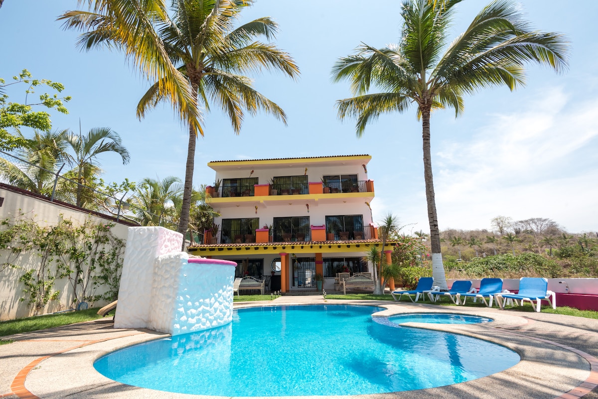 Villas ChulaVista. Welcome to your private apartment with 2 bedrooms, a kitchen, a terrace and a living room that connects the 2 bedrooms (each with its own bathroom). It's on the third floor with high ceiling and a palapa. It has Smart TV and Wi fi Our little hotel is set on the hill 7 min away from the centre with the most beautiful view over the mountains. We have a reception, a pool, and lounge area, and we'll make sure you'll have the best stay in Sayulita!