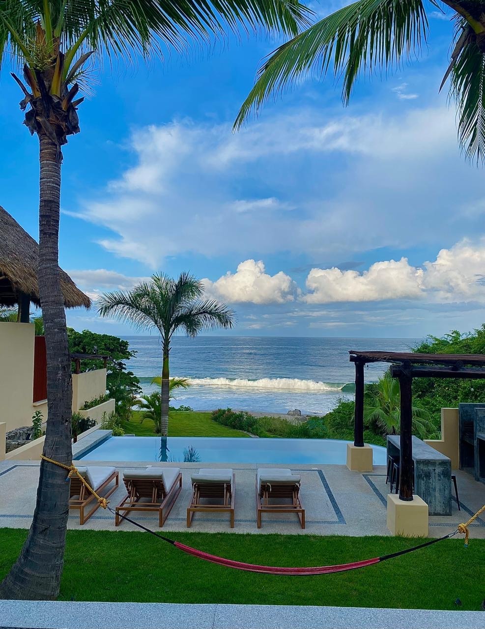 Enjoy a stylish experience at this centrally-located casa. The beachfront luxury condo is steps from Downtown Sayulita's restaurant and nightlife scene, yet sheltered from the noise - offering peaceful bliss within walking distance to anything you need. The 3 bedroom space offers 4 beds (2 Kings, 2 Doubles), a full kitchen, TV's, internet, 2 working stations w/ docking systems, luxury décor/finishes, a private balcony with breathtaking ocean views, etc. Common Space: Infinity pool, BBQ lounge