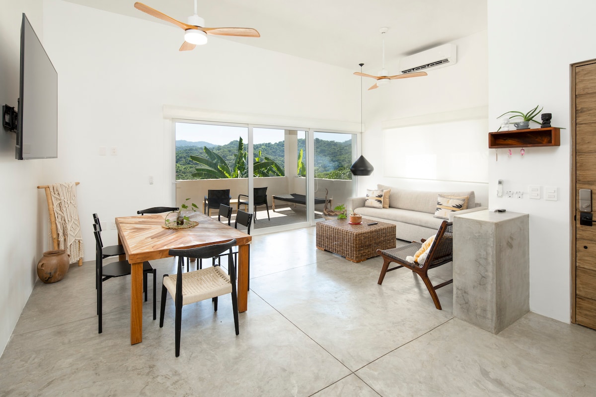 Perched above Gringo Hill, Casa ATMO is a loft-style penthouse with stunning views of Sayulita. Wake up to jungle-covered ridges to the east and the Pacific Ocean to the west, all visible from your bed. This private condo features a dramatic 22-ft atrium, two levels with a master suite, junior bedroom, terrace, and pool. Modern amenities include AC, Starlink internet, and workspaces. Just steps from the plaza and beach, ATMO offers both tranquility and proximity to Sayulita’s vibrant energy.