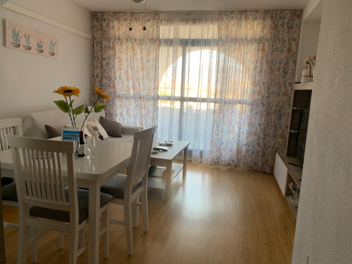 Bonito, amplio y luminoso apartamento situado en primera línea de playa. Dispone de un dormitorio con cama de matrimonio y un cómodo sofá cama para dos personas. La vivienda se compone de un amplio salón-comedor, cuarto de baño recién reformado con plato ducha, cocina espaciosa y totalmente equipada, terraza exterior y lavadero. El residencial cuenta con piscina, hamacas y salida peatonal al paseo marítimo. Además, la vivienda cuenta con instalación de dos máquinas de aire acondicionado.