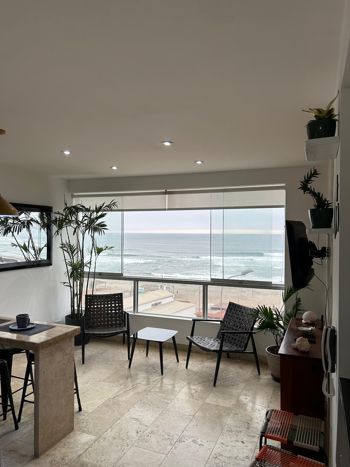 ¡Despierta con el sonido de las olas! Una estadía relajante en este acogedor monoambiente frente al mar, ubicado en el primer piso con acceso directo a la playa. Equipado con una cama queen y un sofá cama, cuenta con cocina completamente equipada, baño privado, Wi-Fi y un proyector para que puedas ver tus series favoritas en Netflix. El espacio es perfecto para descansar, correr buenas olas, trabajar con vista al mar o simplemente desconectarte. -Cama queen y sofá cama de plaza y media.