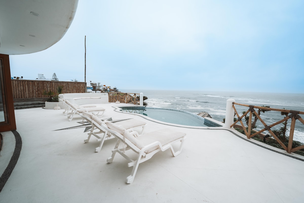 You will feel in a cruise just for you! All areas are for exclusive guest use (no sharing with others) 3 rooms, kitchen, dining room, leaving, terrace, wifi, cable, garden, pool, parking for 2 cars 40 meters to the beach Best spot for surfing Caballeros, Señoritas (direct view) or just chill and relax with the sea view Families and group of friends are welcome. The house have plenty of space for you to have fun, listen your music and enjoy one of the best views in Lima with total privacy