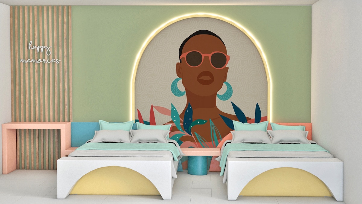 Located at the heart of busy comercial sector of the Island (Centro), Olas del Caribe is within a walking distance from the best restaurants, beaches and comercial stores. Walk out of our front door straight to the Peatonal, where you will not be short of options to shop, dine, dance, or swim! You can enjoy a comfortable stay in one of our rooms with colorful décor to set the mood right for a splendid carribbean vacation!