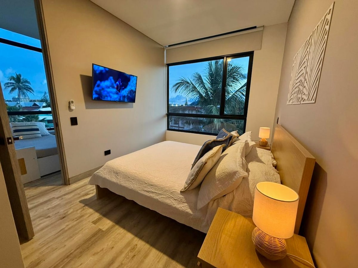 Apartamento de 2 alcobas, en la mejor ubicación de San Andrés. A pocos pasos de la playa, el paseo peatonal, restaurantes, bares, discotecas, muelles turísticos, alquiler de vehículos y almacenes. El apartamento cuenta con una habitación principal con baño privado y vista a la piscina, una segunda habitación con cama doble y un camarote, un salón con dos cómodos sofás cama, comedor y cocina equipada. Ideal para familias, buzos o nomadas digitales que buscan un alojamiento cómodo y bien ubicado