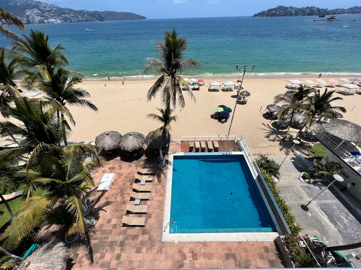 ** LOW RATES FOR SMALL GROUPS. Please inquire.** This is an elegant and tasteful beachfront apartment in Real Diamante with direct beach access and a large private terrace. Luxury apartment in low-rise building with direct access to white sand beach. Expansive terrace with panoramic ocean views and plunge pool. Located in the Diamante region of Acapulco - Secure, Beautiful, Luxurious - 3 infinity pools.