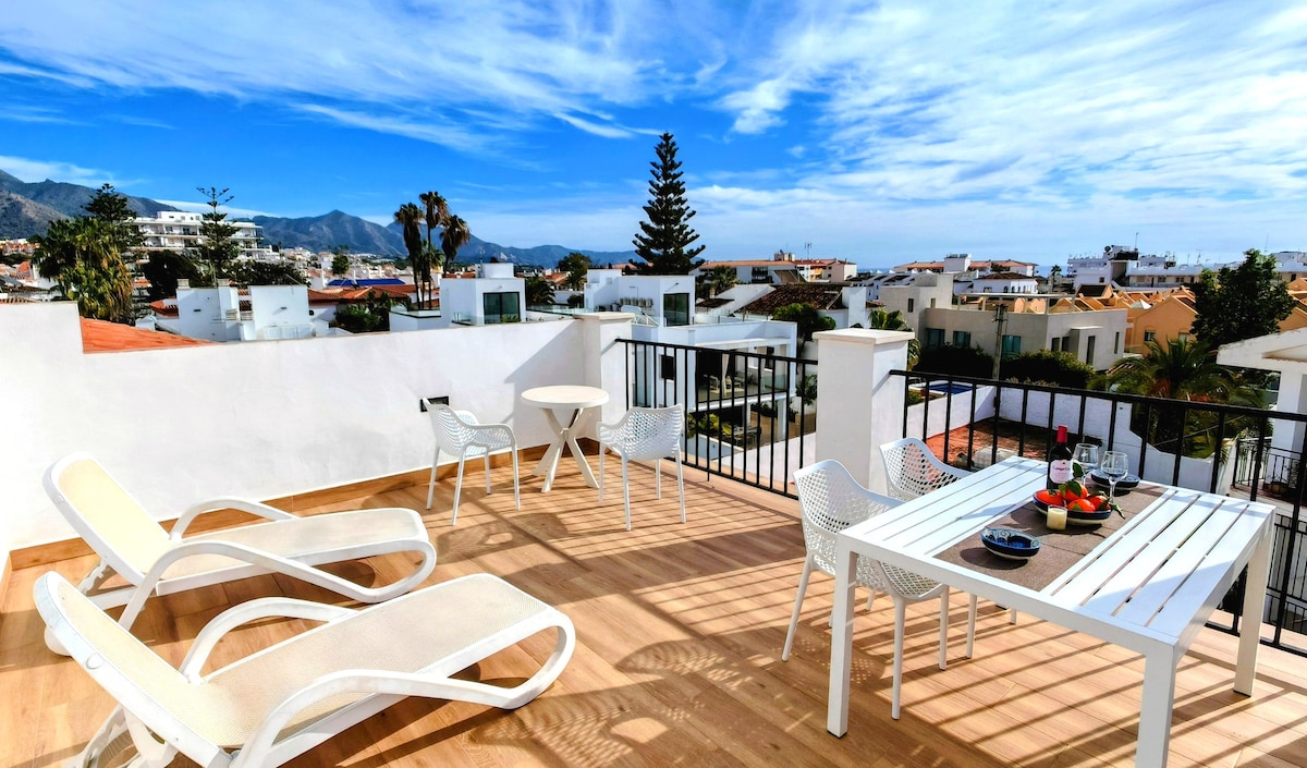 Disfruta de unas vacaciones ideales y tranquilas cerca del mar, con una excelente ubicación muy céntrico y tranquilo a la vez, a tres minutos del Balcón de Europa, cinco minutos en coche de las famosas Cuevas de Nerja, sus maravillosos acantilados y pintorescas calles con mucho encanto, a 10 minutos del bonito pueblo blanco de Frigiliana y una hora de Sierra Nevada.