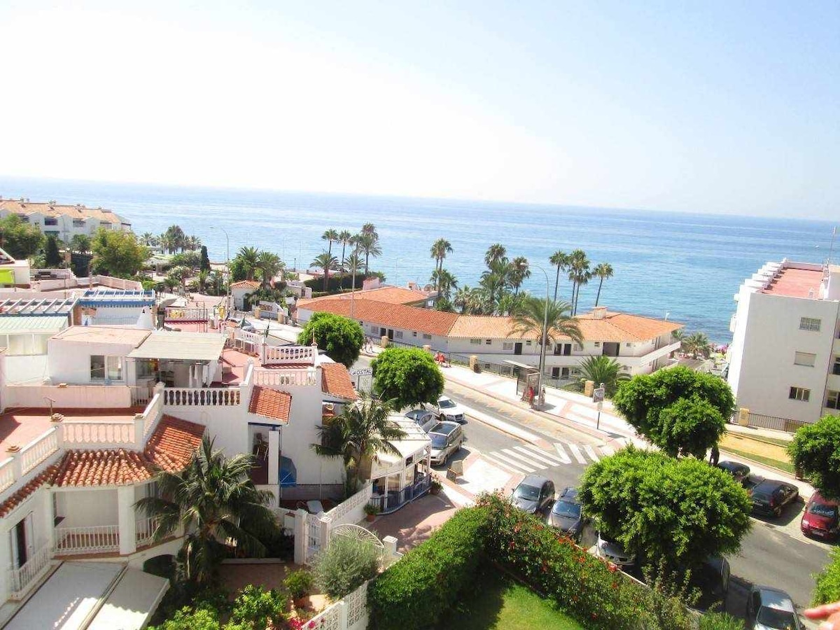 Modern and fully equipped apartment, first line beach in Nerja center's most popular area, Torrecilla. Walking distance to "everything". The apartment is located at top floor of "Torresol" with fantastic views of the sea, the mountains and Plaza Cangrejo. Comfortable beds, cooling and heating, Internet 300 Mb, 55" smart TV, fully equipped kitchen and washing machine. Access to a large lovely pool with tropical garden as well as a large communal roof terrace. The house has a lift!