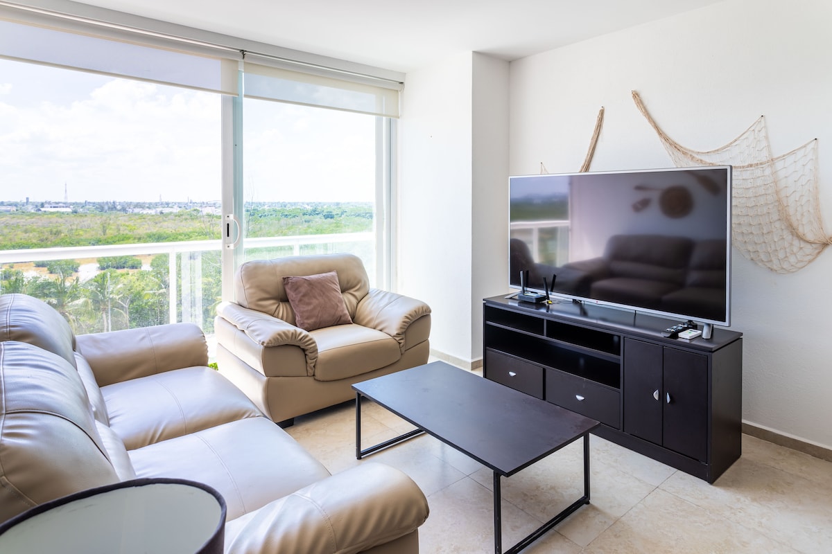 Elegante y hermoso departamento, súper iluminado y equipado con lo necesario para tener una cómoda estancia. Además puedes usar nuestra alberca y el espacioso Lobby. Estamos a 15 minutos del la playa, a 8 minutos del centro de la ciudad y a 15 minutos del aeropuerto llendo en auto. También puedes caminar solo 5 minutos para llegar a varios restaurantes de los que estamos muy cerca. Nos encantará poder recibirte en nuestro espacio!