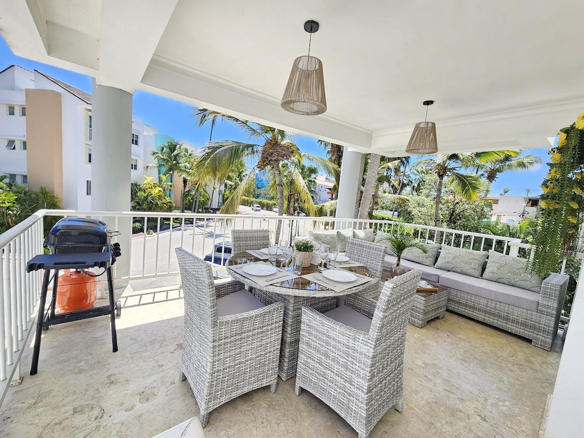 Pensado para toda la familia, y ubicado frente a playa, con el sonido Del Mar en todo momento, bien equipado con muebles de alta calidad, diseñado por la prestigiosa casa de diseño las Kasas Portugal, aquí vivirás junto a tu familia y amigos, una experiencia única frente al Mar Caribe. La terraza de esta unidad esta ubicada estratégicamente frente al mar, siendo este uno de los atractivos principales que hacen especial este espacio.
