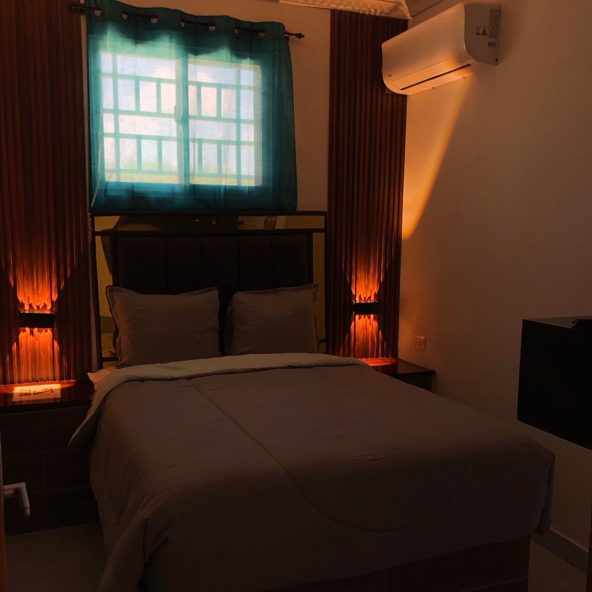 The room is equipped with air conditioning, a comfortable bed, a flat-screen TV, and Wi-Fi, providing everything needed for a pleasant stay.