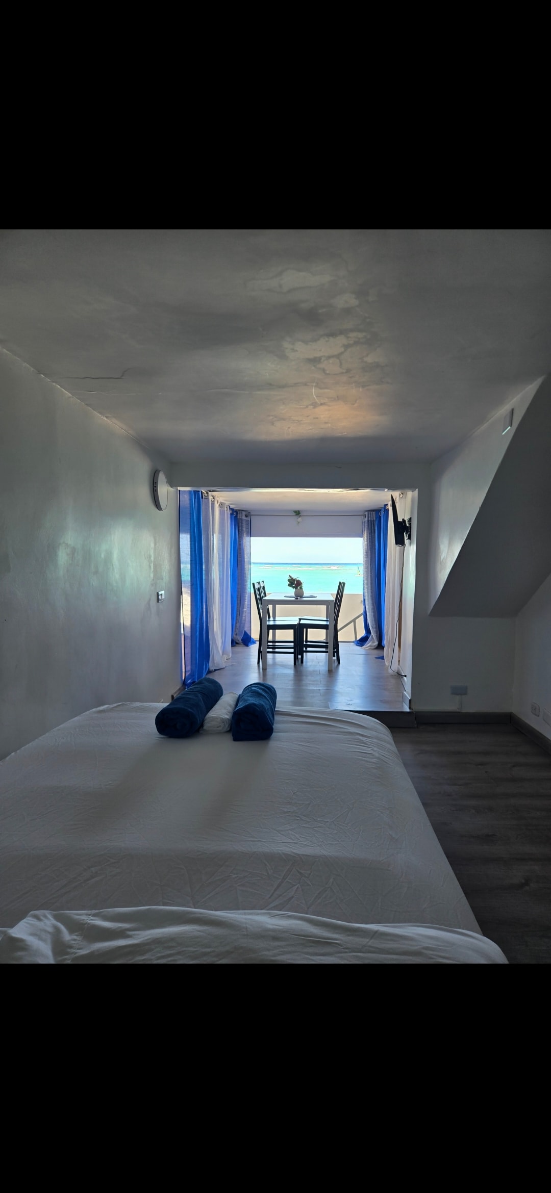 Habitación al lado de la PLAYA está ubicado en la zona de El Cortecito, antiguo pueblo de pescadores, Las playas son de arena blanca y fina de color azul verdoso. Esta en el corazón de Bávaro a unos minutos caminando de la zona principal de bares y restaurantes. Una Habitación cama Full piso arriba y piso bajo otra cama Full, wifi, Tv, 01 Aire acondicionado, baño con agua caliente. Tiene 2 niveles y si, al lado de la playa misma.
