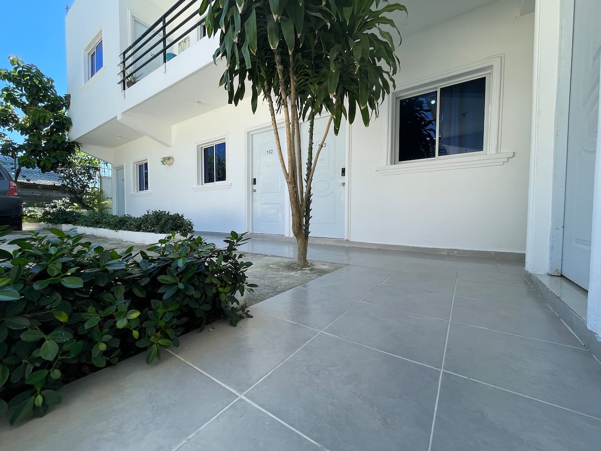 Aparthotel Dubai is a spacious and comfortable 41-room aparthotel located just 5 minutes (5.5km) from the Punta Cana International Airport (PUJ). All rooms include air conditioning, free WIFI, Smart TV, private bathroom with all its basic utensils, intercom, closet, among other things. NOTE: We do not have hot water. At the moment we do not have hot water service, but we are working to have it as soon as possible.