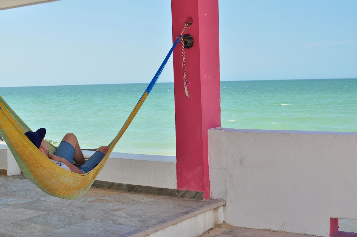 ★Bienvenido a Hamaka Beach House★ Hermosa casa de playa en la mejor zona de Chixchulub a solo 50 metros del mar y playa de arena suave, equipada con bello mobiliario y todo lo imprescindible para una estancia cómoda y relajante. Doble palapa, terrazas, una alberca y amplios espacios para disfrutar de un tiempo con la familia o los amigos; apartados del ruido de la cotidianidad. A 10" de Progreso. ¿Deseas tener la experiencia de dormir en hamaca? ¡En Hamaka House te invitamos a hacerlo!
