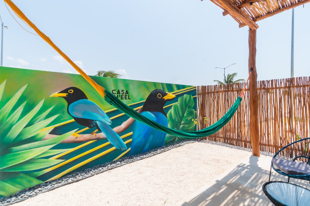 Villa Bohemia is an adults only, relaxing getaway located in a quaint fishing village between Chelem and Chuburna, off the Entrada Arrecifes (Reef). Catch some sun at the pool or at the beach, or relax in the shade and enjoy the peaceful and relaxing environment we've created for you. Pets and children are not allowed. Snorkel and swim at the small reef, located right in your own backyard.