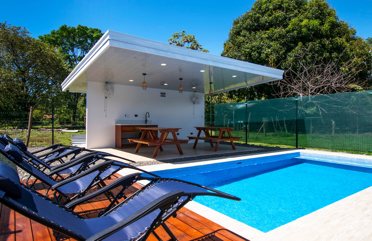 2bd 2ba modern home - on the mountain, in a rain forest overlooking the ocean! Located high above Uvita, you'll feel disconnected from it all, yet only 12min from downtown & FAST wifi! The 180° views will stop you in your tracks. And of course there’s a pool to cool off in while enjoying a timeless vacation on a 66 acre oasis in the clouds. So whether it be a coffee or tea, a glass of wine, a cold drink it will pair perfectly w/ a Costa Rican sunset. 25$ per extra guest per night