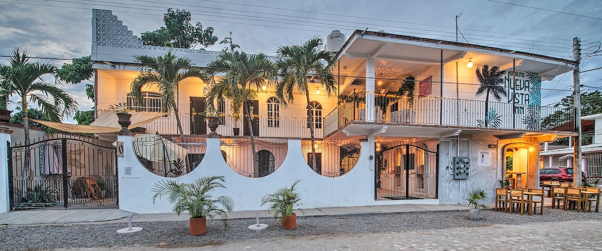 Please join us at our convenient downtown location within walking distance of the beach, Malecón Boardwalk, Mercado Municipal Rio Cuale, La Islita, Parroquia de Nuestra Señora de Guadalupe, and the Romantic Zone. Your bed will be in a dorm-style shared room containing three bunk beds for a total of six twin-size beds. There is a full bathroom with hot water connected to this room. Shared spaces include the second-floor patio and kitchen. This listing is for the top bunk bed.
