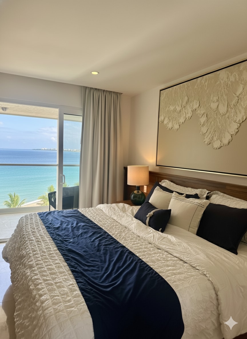 Despierta con el sonido del mar y una vista increíble desde tu balcón privado en este moderno estudio frente a la playa en Las Glorias. Perfecto para parejas o viajeros solos, ofrece cama King, WiFi rápido, cocina equipada y acceso directo a la playa. Relájate en la alberca en la azotea del piso 30 o disfruta de amenidades tipo resort: jacuzzis, gimnasio, y más. A minutos del Malecón y Versalles, pero con la tranquilidad ideal para desconectarte.