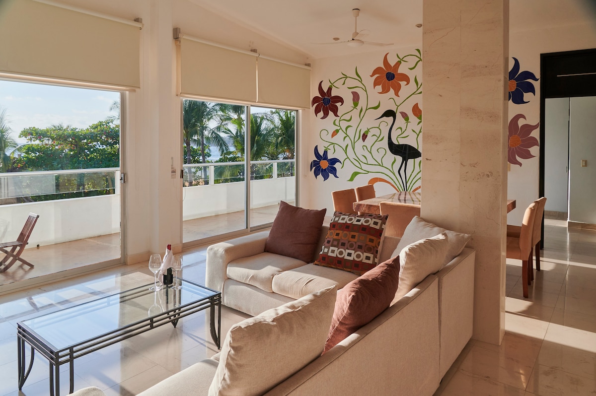 Amazing oceanfront Penthouse Suite overlooking the beautiful swimming and surfing bay of Carrizalillo with private terrace and dip pool with Wi-Fi STARLINK internet, A/C, fully equipped kitchen, washer and dryer and large living space with TV and Netflix. The suite is a short 5 minute walk to Carrizalillo beach and Rinconada area with fantastic restaurants and coffee shops.