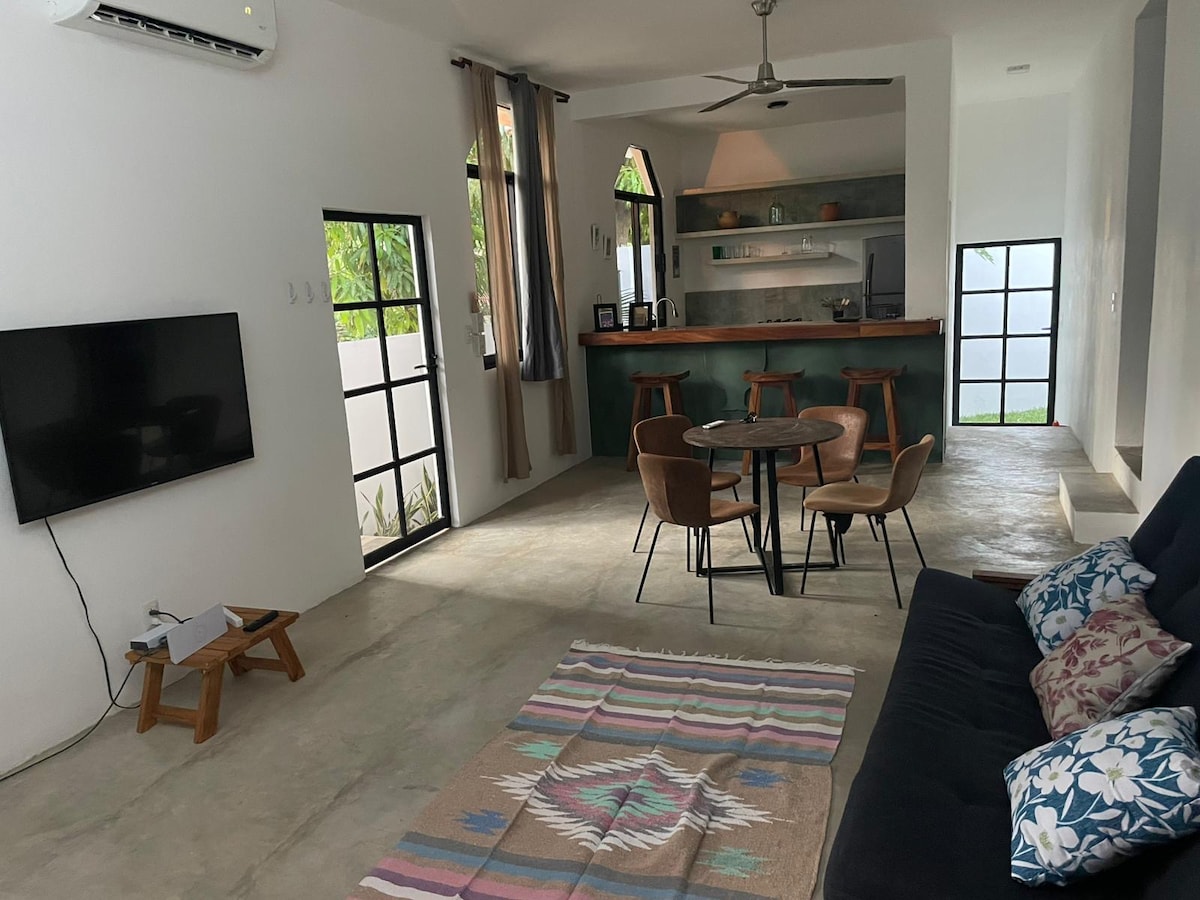 "Welcome to Casa Shanti, our premier Airbnb retreat! This spacious apartment offers two king-sized beds in the master bedroom, a double bed in a separate room, and a fully equipped kitchen. Relax in the large living room or in your private terrace, protected with mosquito netting. Enjoy high-speed ethernet connected Starlink internet, enabling you to get work done during your unforgettable stay at Casa Shanti. walk to sunsets as we are 1 minute walking distance away!"