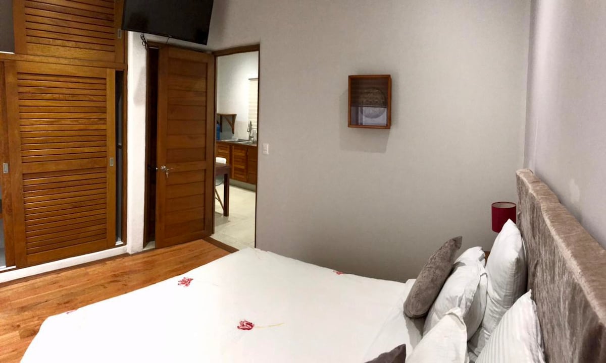 Vista suit is brand new addition to Casa Monika. Unit got its own kitchen, bathroom, patio and amazing view of the city. While drinking your morning coffee from your bed you can see ocean, mountain and city panorama. Having had said that please keep in mind you coming to Mexican village so you might hear owls, dogs or chickens…STARLINK internet
