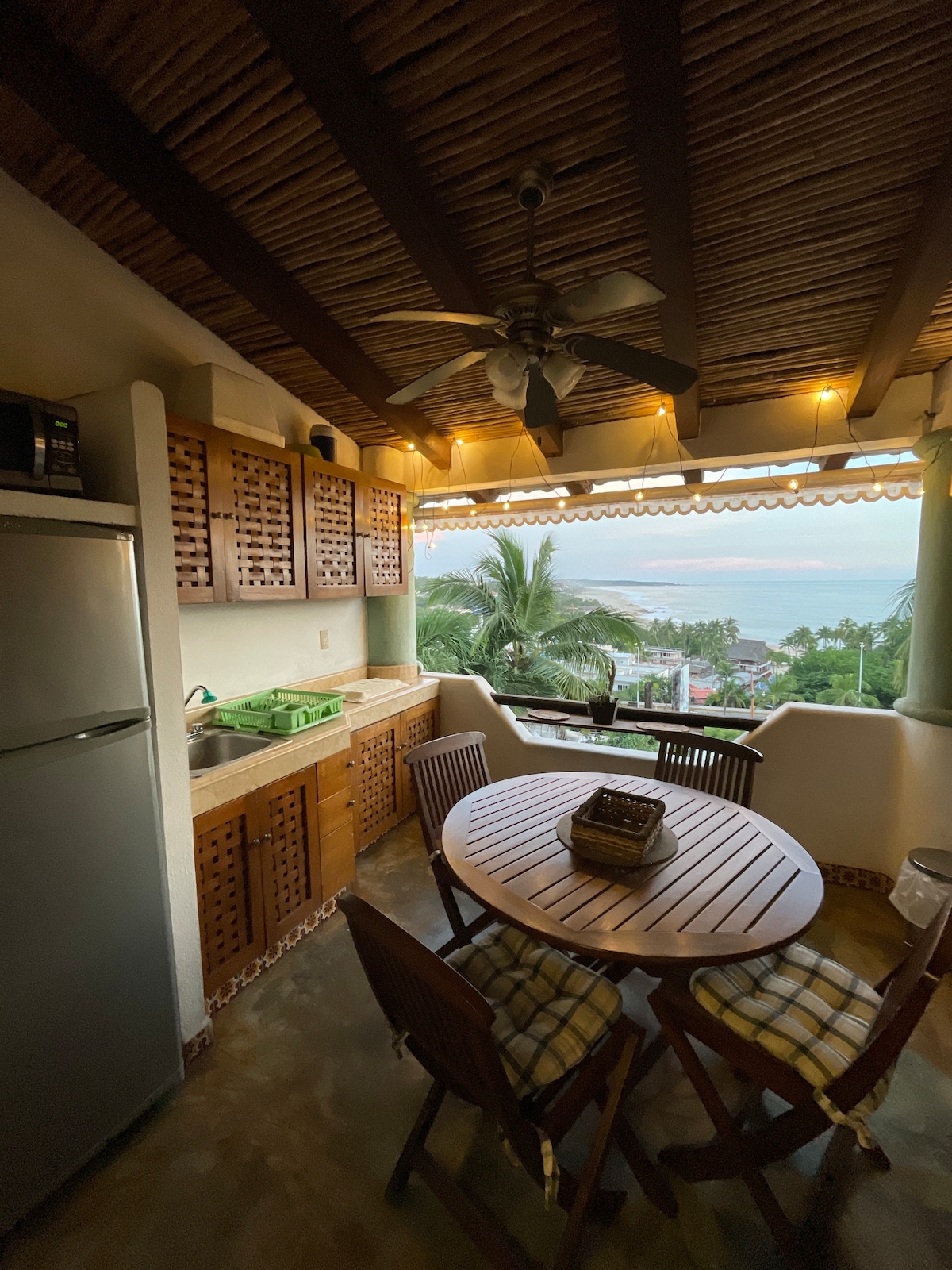 Come live the experience of falling in love with the infinite Pacific Ocean at this villa. The spectacular terrace with private pool shows an amazing view to the ocean, where you can appreciate whole Zicatela beach and enjoy the sound of waves splashing the rocks down the cliff, while the sea birds sing their songs. We are a short walk from Manzanillo beach, as well as minutes away from Carrizalillo beach and some of the best restaurants and bars in "La Rinconada".