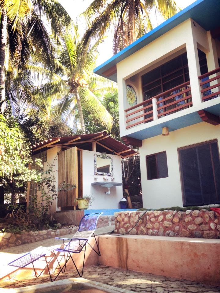 The suite has some gorgeous mexican details, like the tile, sink and floor handmade in Puebla, chairs from Michoacan, nice wooden tables, oxide bar and closets, oaxacan quilt and river stone shower floor. The living room is outside on the terrace with pool view. The kitchenette is well equipped. It is a colonial style building with a small but pretty swimming pool. The area is quiet and to minutes from Carrizalillo beach, nice restaurants, mini super, boutiques, drug store, and other services.