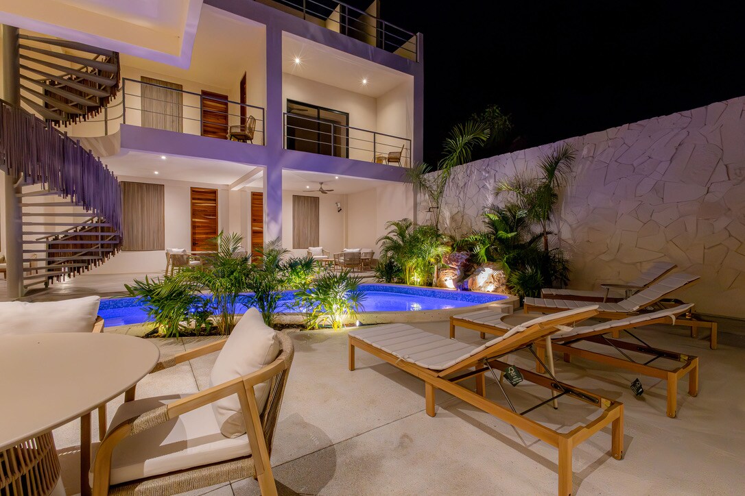 Boutique Tropical Hideaway – 4 independent suites designed for comfort and privacy in a peaceful area, just a 10-minute walk to La Punta Beach. ⭐ The most comfortable kingsize bed - “sleep on the clouds” ⭐ Private plunge pool in every suite ⭐ Rooftop palapa with 360° ocean & mountain views ⭐ A/C in bedroom + blackout shades ⭐ Peaceful yet convenient location. Message us and make it yours!