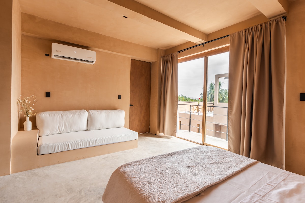 A boutique hotel for travelers who love the perfect mix of style, comfort, and the relaxed vibe of Puerto Escondido. The Space: Thoughtfully designed modern Studio Apartment. Full Kitchen King-sized bed Tina Aircon and Wi-Fi Amenities: A pool area to unwind after a day at the beach Rooftop terrace with 360° views of the ocean, mountains, and stunning sunsets On-site café serving freshly brewed local coffee. Location: located in La Punta, just a short walk to the surf and beachside cafes.