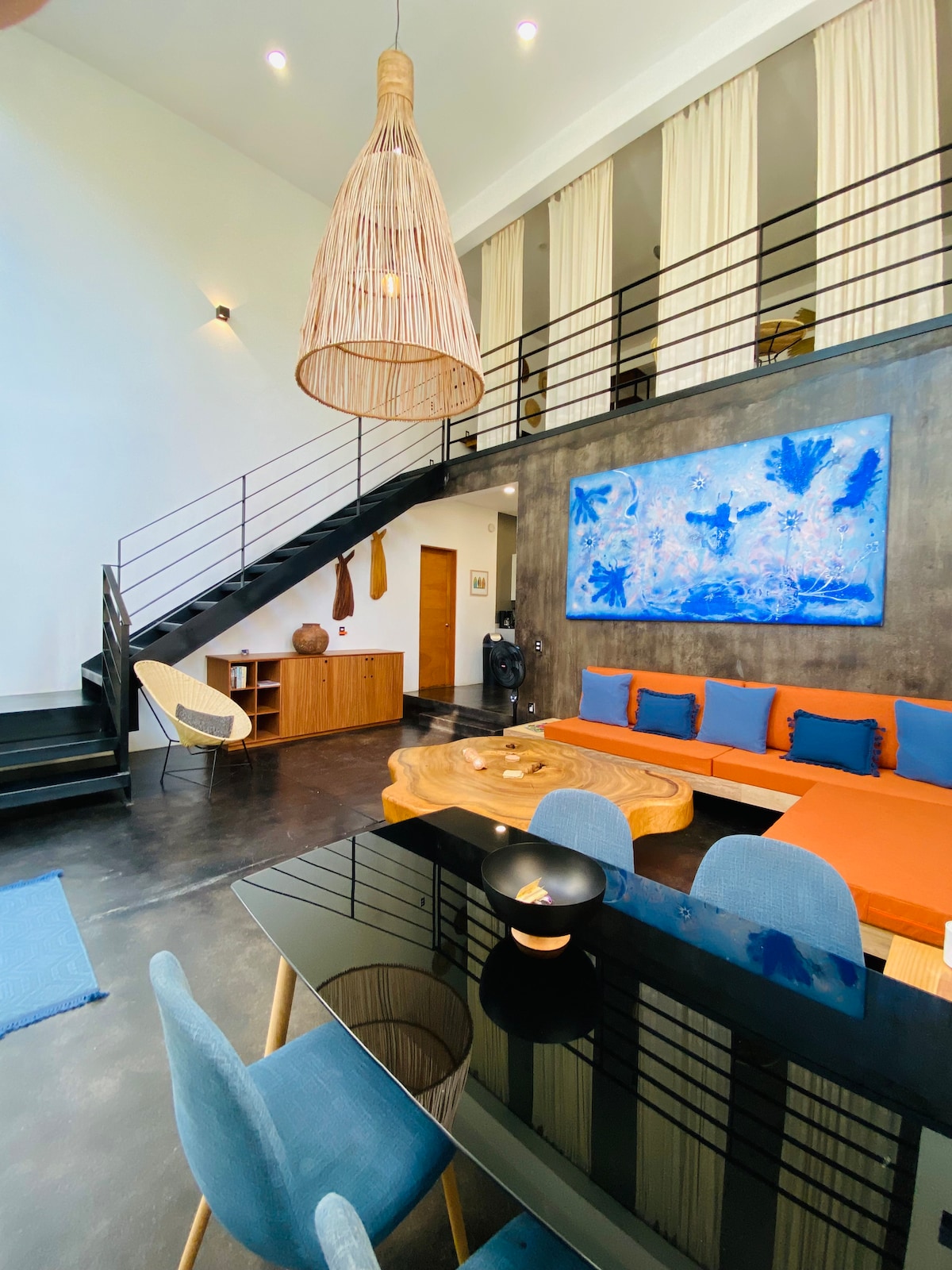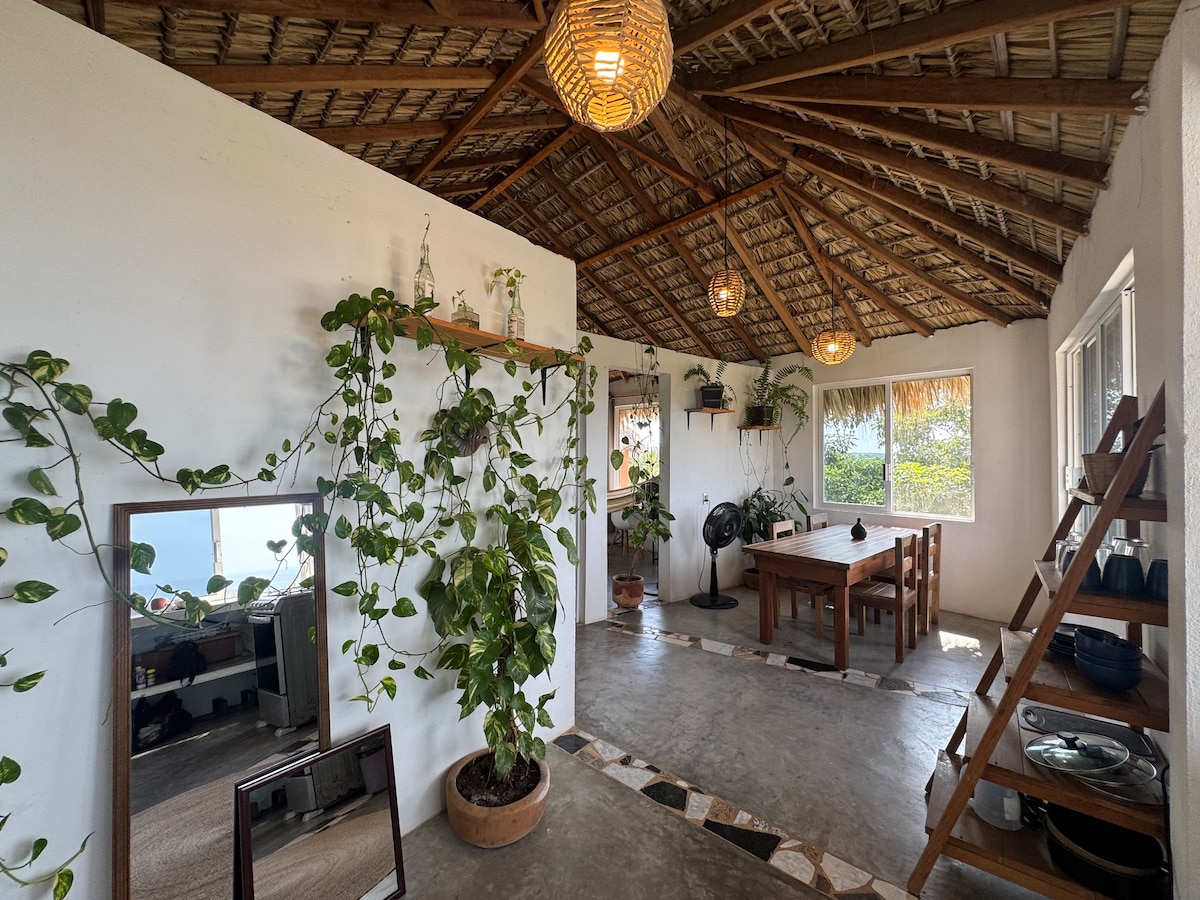 Enjoy the view of the bay from your private terrace or a beautiful sunset while cooking, from your hammock, or even from the comfort of your air-conditioned bed! A modern and minimalist place with a Mexican touch. The loft is open, except for the bedroom. It has Starlink to ensure internet connection, the bathroom has hot water, and the kitchen is equipped with everything you need. The house is all for you.