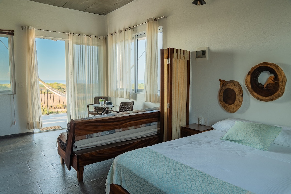 Spectacular and modern new Loft ideal for two or three guests, you will enjoy a king bed, Smart TV, high-speed Wi-Fi connection, private bathroom and access to a private terrace, shared patio and pool as well as a roof top to watch the sunset. Just 3 blocks from Zicatela beach and 3 blocks from La Punta, it is far enough from the noise to rest but close to walk to the commercial area. The suite has black out blinds to maximize rest and privacy, you are welcom to book this spectacular property.