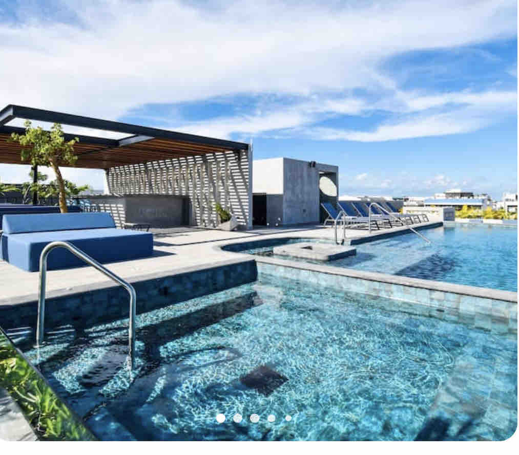 Escape to your own private rooftop oasis with a plunge pool, outdoor dining, and stunning tropical views—just minutes from Playa del Carmen’s famous 5th Avenue and beaches. Modern luxury, resort amenities, and complete comfort await. Relax in a beautifully designed condo featuring floor-to-ceiling windows, a stylish living area, full kitchen, private balcony, and two serene bedrooms with premium bedding. Perfect for couples, small families, looking for space, privacy, and resort comfort