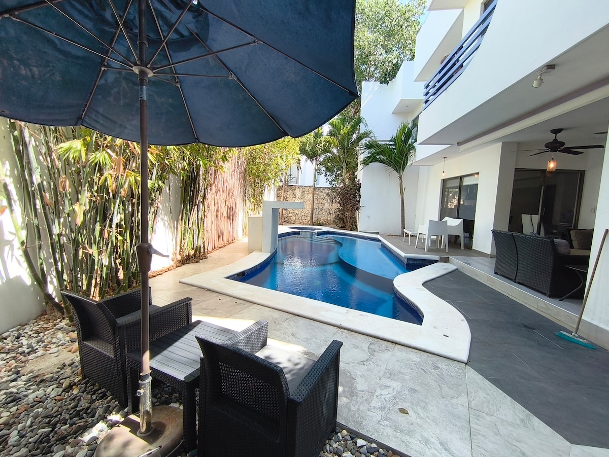 Step right outside your door to enjoy the sparkling pool, or hop in a golf cart for a breezy 5-minute ride to the beach or vibrant 5th Avenue—home to Playa’s best restaurants, bars, and boutiques. Two bedrooms with en-suite bathrooms + guest half bath Fully equipped kitchen & cozy living space Private terrace just steps from the pool Golf cart included – perfect for quick beach runs or cruising to town Located in Playacar – safe, serene, and lushly landscaped Fast Wi-Fi, A/C, and free parking