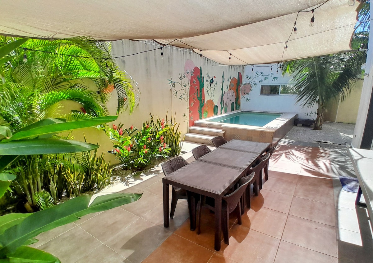 Disfruta de esta casa céntrica en Playa del Carmen con alberca privada, perfecta para amigos o familias. Cuenta con 3 recámaras con A/C, 2 baños, wifi y seguridad 24/7. Ideal para hasta 6 personas, MÁXIMO. Ubicada en una zona tranquila, a solo 15 minutos caminando de la playa, la Quinta Avenida y restaurantes. Equipada con lo esencial para estancias cortas o medianas. Se pide depósito en efectivo y se aceptan mascotas con costo adicional. NO SE ACEPTAN EVENTOS, FESTEJOS, ETC.