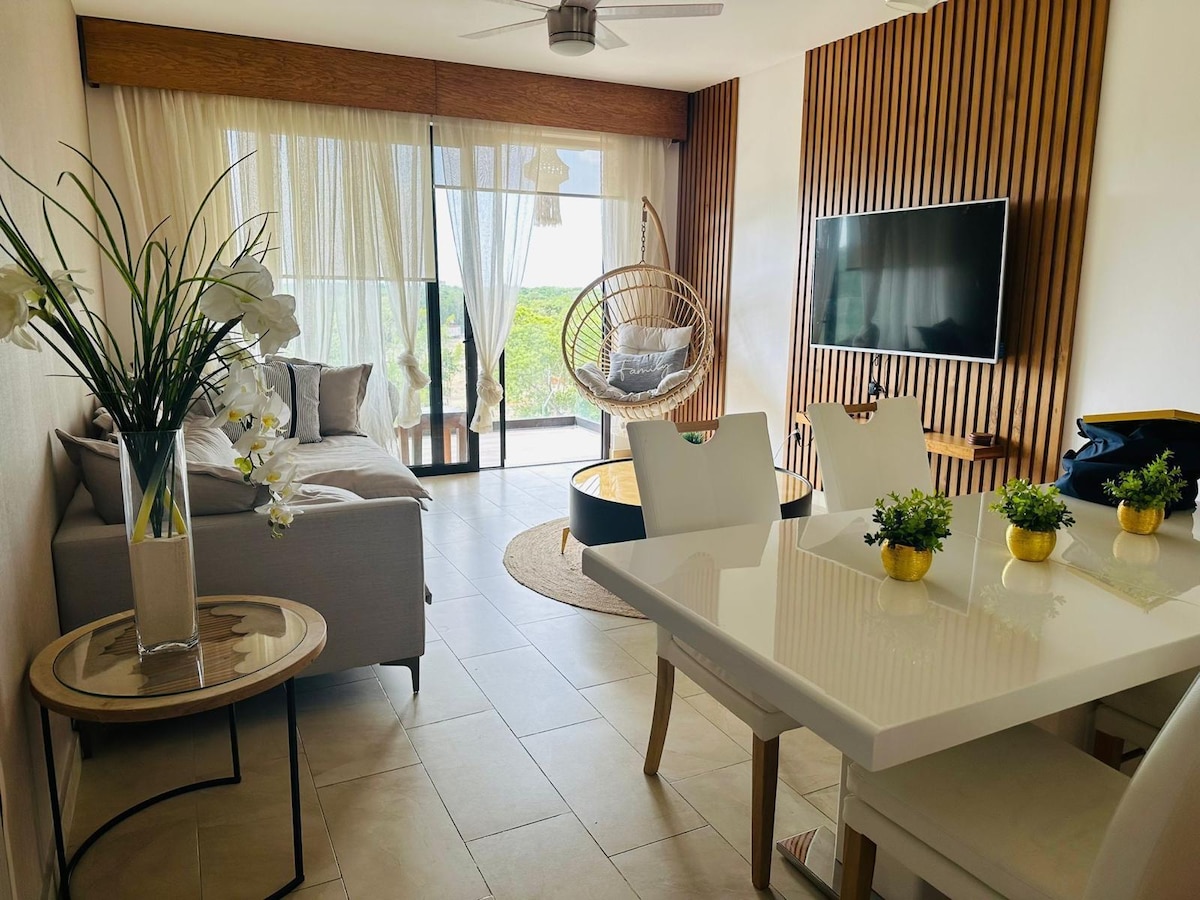 Discover the charm of the Caribbean and turn your trip to Playa into an unforgettable memory in a cozy apartment with views of the jungle, surrounded by lush trees. Perfect for families, we offer green areas, bike paths, swimming pools, barbecues, jacuzzis, kayaks, and beautiful water channels that surround the residences. Enjoy a business center, clubhouse, gym, and a rooftop, with security and surveillance 24/7. Just 5 minutes from the beach, in the exclusive area of Mayakoba.