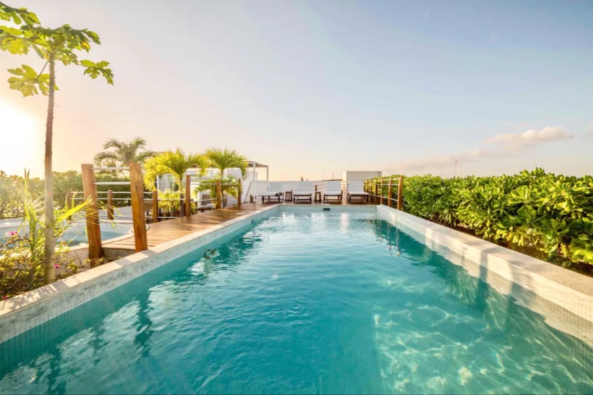 @thestrelitziaproject 🏆 The highest rated Airbnbs in Playa ⭐️ Fully en-suite smart studio room with kitchenette within a private home valued at $1m+ Wake up in a memory foam bed to views of a stunning natural cenote and infinity pool with your own private outdoor breakfast bar & terrace, 4K TV, Netflix included, Alexa-controlled lighting, iPad controls, Starlink WiFi, motorized blackout blinds, kitchenette, and more. We also offer car rental! Ask about potential construction before booking!
