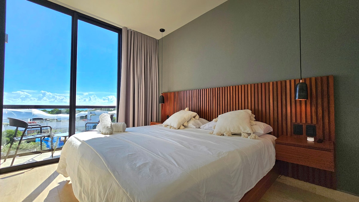 Welcome to your private oasis at AWA in Playa del Carmen. - Ultra-comfortable 2-bedroom, 2-bathroom apartment - Private terrace overlooking the pool - Huge 150m pool with built-in bar - Gym, paddle court, and massage room - Rooftop reserved for adults with two pools - Children's club and play areas - 24-hour reception service - 10-minute walk to beautiful beaches - Nearby restaurants, bars, and golf course - Xcaret Park and Quinta Avenida close by