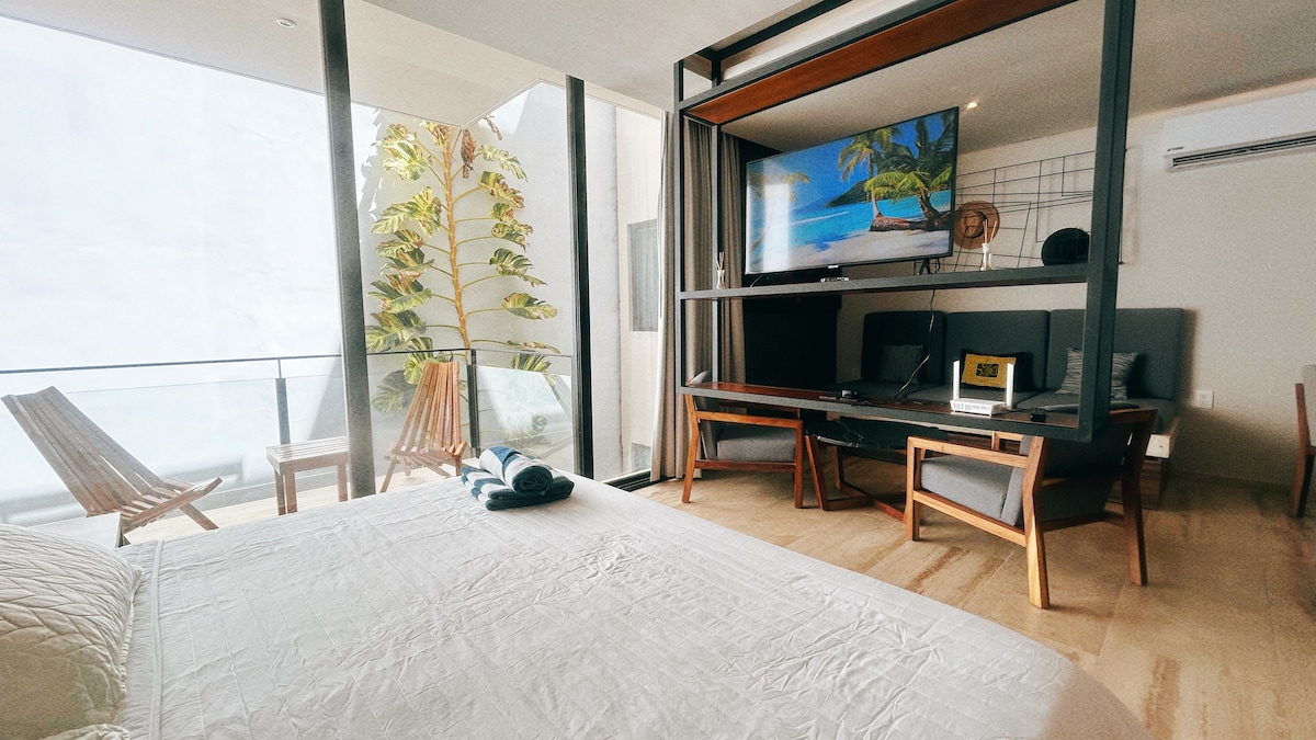 Disfruta lo mejor de Playa del Carmen en este moderno departamento de 1 recámara! A unos pasos caminando de la playa y de la famosa 5ta Av., este espacio es perfecto para quienes buscan comodidad, ubicación y un ambiente relajado para descansar o explorar la Riviera Maya. Con una recámara con AC, cocina totalmente equipada, baño privado, WiFi de alta velocidad y una decoración fresca, ideal para parejas, viajeros solitarios o nómadas digitales. Disfruta Playa del Carmen en este depa único!