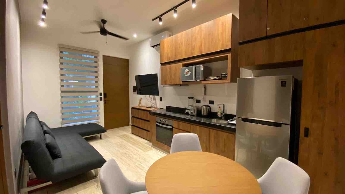 Escape to your own private rooftop oasis with a plunge pool, outdoor dining, and stunning tropical views—just minutes from Playa del Carmen’s famous 5th Avenue and beaches. Modern luxury, resort amenities, and complete comfort await. Relax in a beautifully designed condo featuring floor-to-ceiling windows, a stylish living area, full kitchen, private balcony, and two serene bedrooms with premium bedding. Perfect for couples, small families, looking for space, privacy, and resort comfort