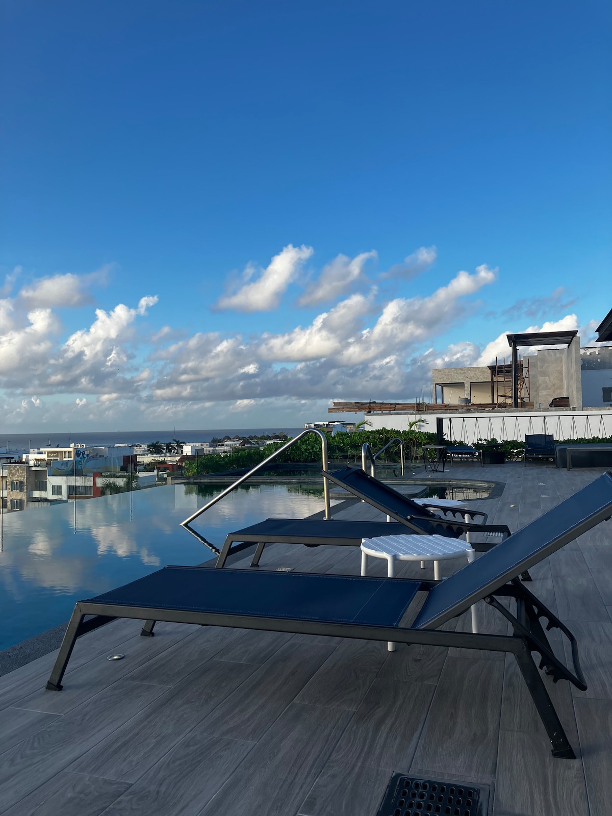 Your vacation in the most exclusive complex in downtown Playa del Carmen, very close to the beach and 5th Ave This luxury apartment features very spacious areas. It consists of 2 bedrooms and 2 full bathrooms, and a large terrace-balcony where you can sunbathe with an amazing view of the pool. Gym, sauna, steam room, hammocks, snack bar, fire pit area, pool table, rooftop with infinity pool and spectacular views, children's playground, paddle court, and co-working space.