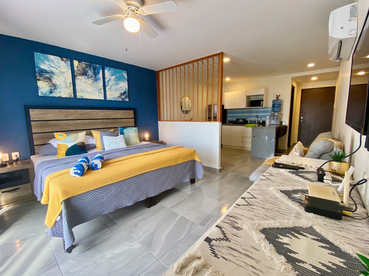 Acogedor estudio ideal para tu estancia en Playa del Carmen. A solo 6 esquinas de la famosa Quinta Avenida y de la playa, y a pasos de tiendas y supermercados. Cuenta con cama Queen, baño completo, clóset amplio, TV con programación, minibar y área de descanso. Incluye estacionamiento dentro de las instalaciones. Perfecto para parejas, viajeros solos o de trabajo que buscan comodidad y ubicación privilegiada