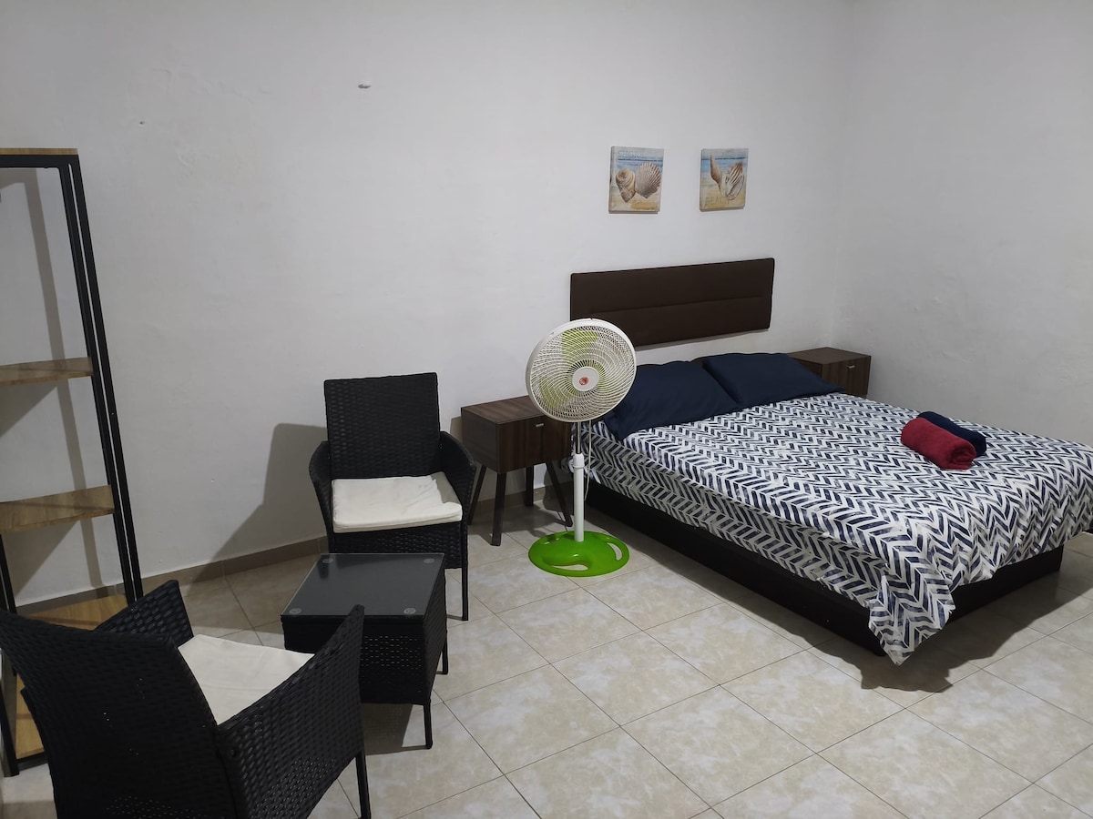 Estudio en la calle 52 entre las Av 15 y 20 . Cuenta con cocineta básica, baño privado dentro de la habitación y aire acondicionado. LO MÁS IMPORTANTE!!! está a 2 cuadras de la 5ta avenida y a 5 minutos de la playa. Solo hay agua caliente en la ducha y agua fría en lavamanos y lavaplatos . Para mejor comodidad y no llevarte sorpresas es importante que tomes en cuenta el clima tropical y el ecosistema de la Riviera.