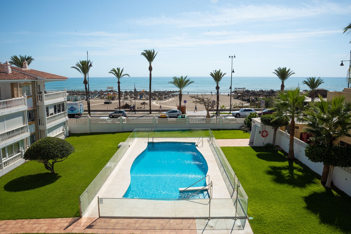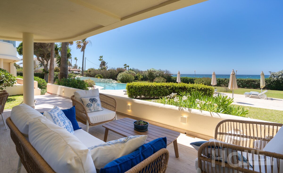 Beachfront Elviria ,sea views,pool and garden