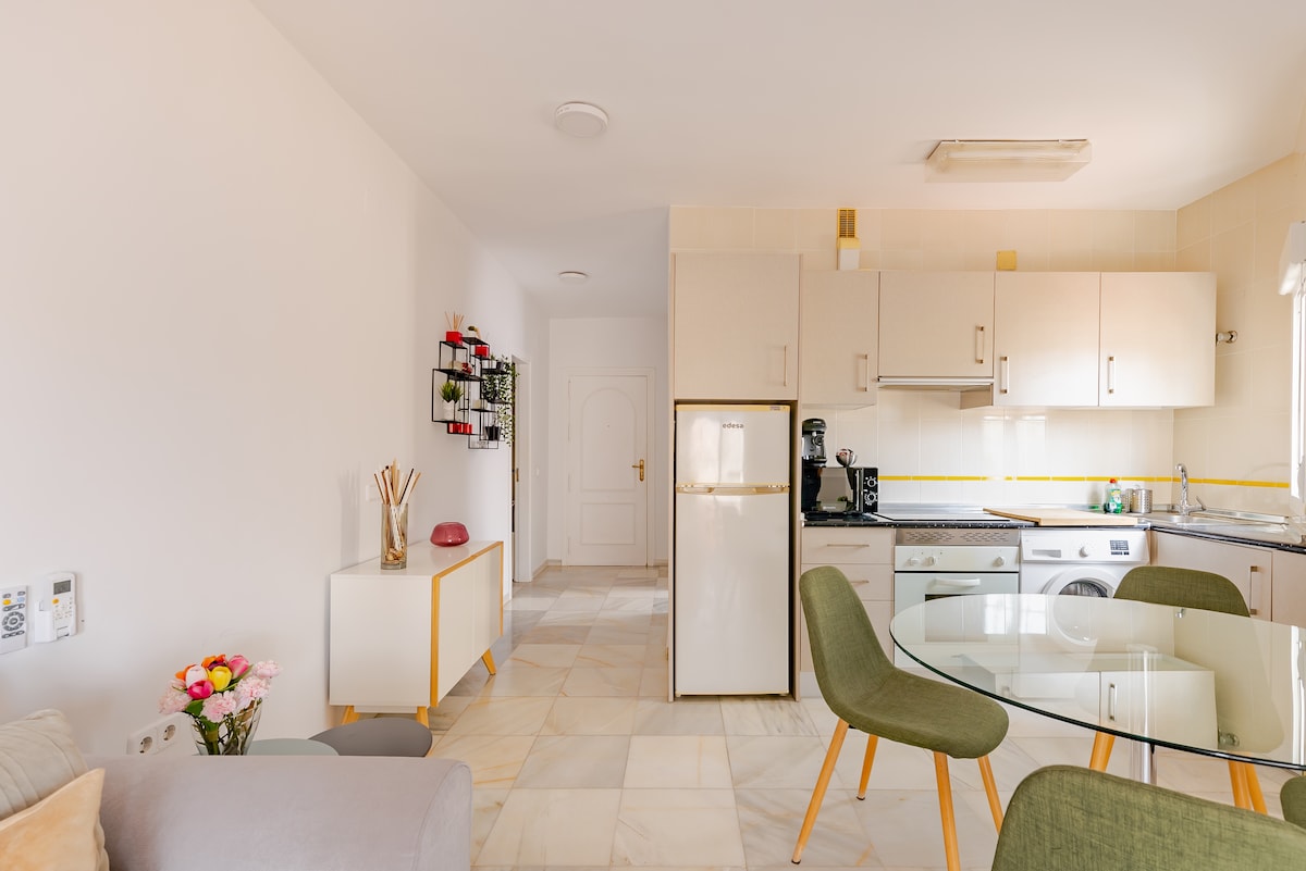 Compact and modern nordic design studio fully refurbished, just at the heart of Torremolinos, in the new pedestrian boulevard. Avenida de Palma de Mallorca 6. Only 1 minute on foot to San Miguel Street, 2 minutes on foot to Costa del Sol Square, Torremolinos train stop, and 10 minutes walking to the Bajondillo beach. Gym next to the building. Close to the entertainment area, bars and restaurants and shops. Nogalera Square is only 3 min on foot. Free private wifi 100mb