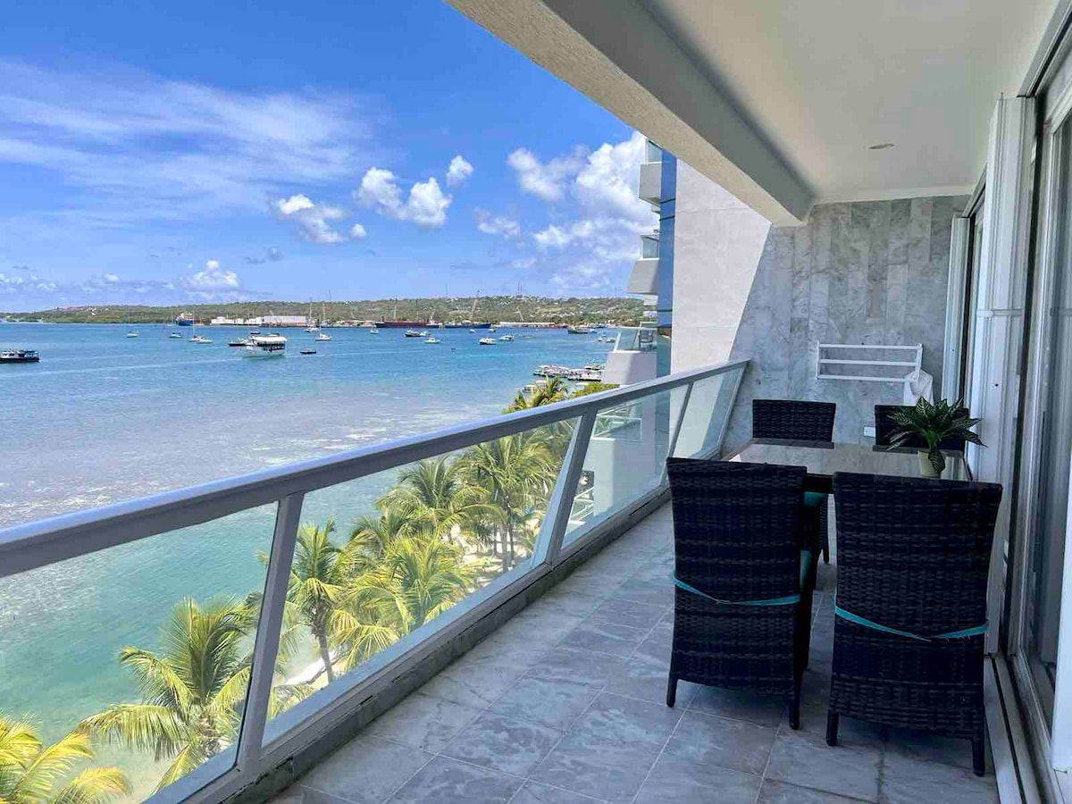 Despiértese con la impresionante vista del horizonte. Este hermoso apartamento tiene un ambiente relajante, urbano y familiar en todas partes y una maravillosa vista. Relájese en el balcón mientras disfruta del agua cristalina del mar de 7 colores y escápese a un condominio que cuenta con vista al mar desde todas las habitaciones y un balcón envolvente, en un sector tranquilo, seguro y muy cerca a la playa, restaurantes y comercio. El edificio tiene seguridad 24 horas.